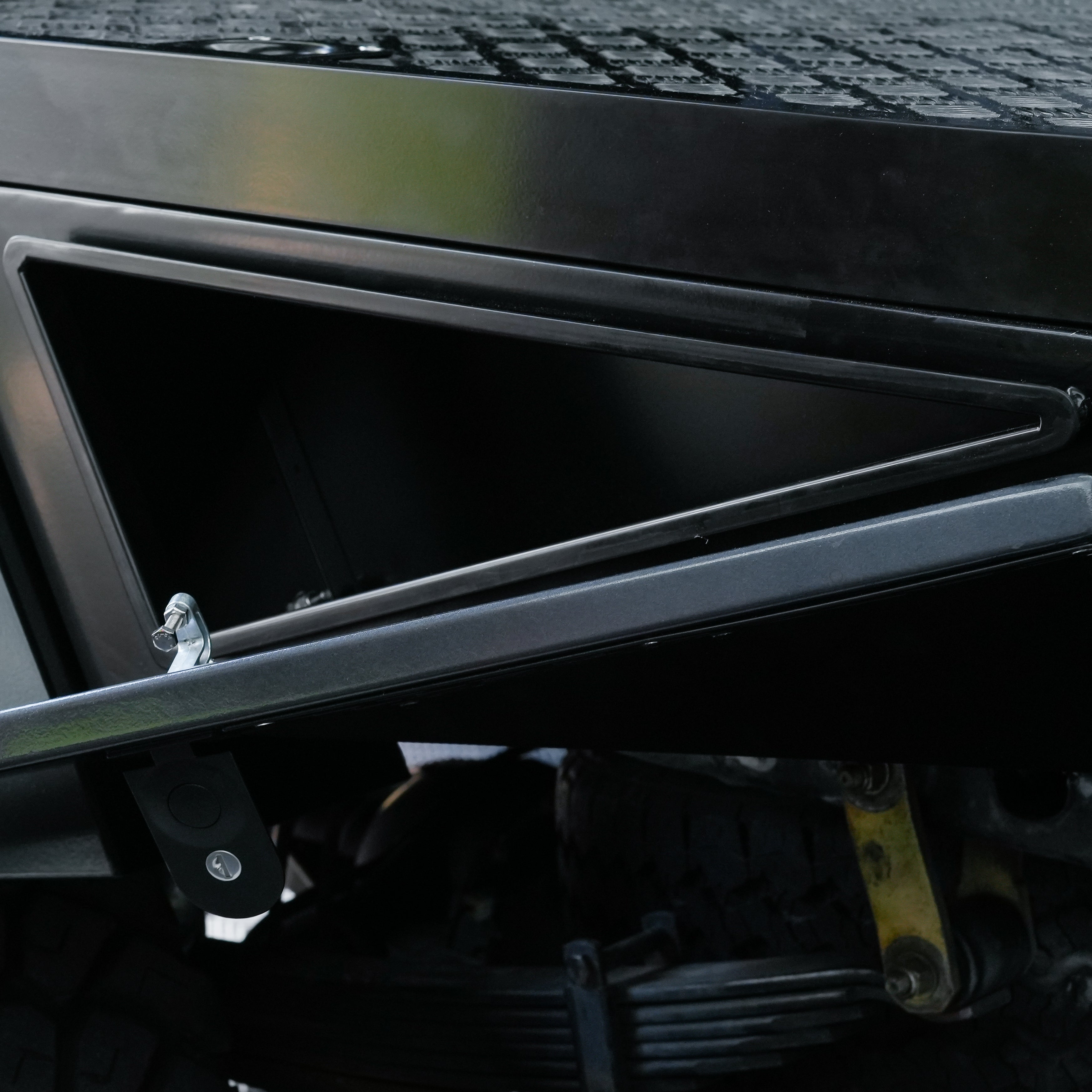 The Step Above Off-Road Nomad Tray is engineered in partnership with UNIDAN, using the same aluminium fabrication techniques seen in their Unimog and expedition vehicle builds. Every tray is constructed with high-grade 5052/5005 aluminium, a full RHS welded subframe, and precision TIG-level workmanship to create a platform that’s stronger, stiffer and more stable than traditional bracket-mounted trays.